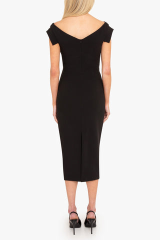 A modern take on a timeless silhouette, the Jacqueline midi dress is the reimagined evolution of our iconic Jackie O. Designed for 2025, this style blends refined tailoring with sculptural draping, creating a sleek, confident look. Crafted from structured stretch super loft woven, it features an off-shoulder neckline with soft tucks that frame the bodice, leading into a streamlined pencil skirt. The fitted design flatters the natural shape, making it a go-to choice for elevated occasions.