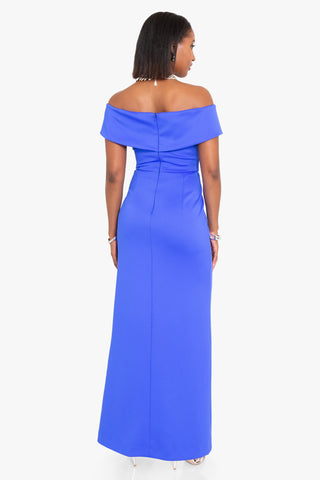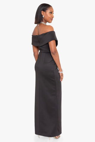 The Prisma Gown features a flattering off-the-shoulder neckline and sculptural pleated detailing that enhances the bodice. The silhouette is shaped by a petal wrap skirt that adds movement and a subtle front slit for a touch of allure. Perfect for special occasions, this gown blends timeless romance with a fresh edge.