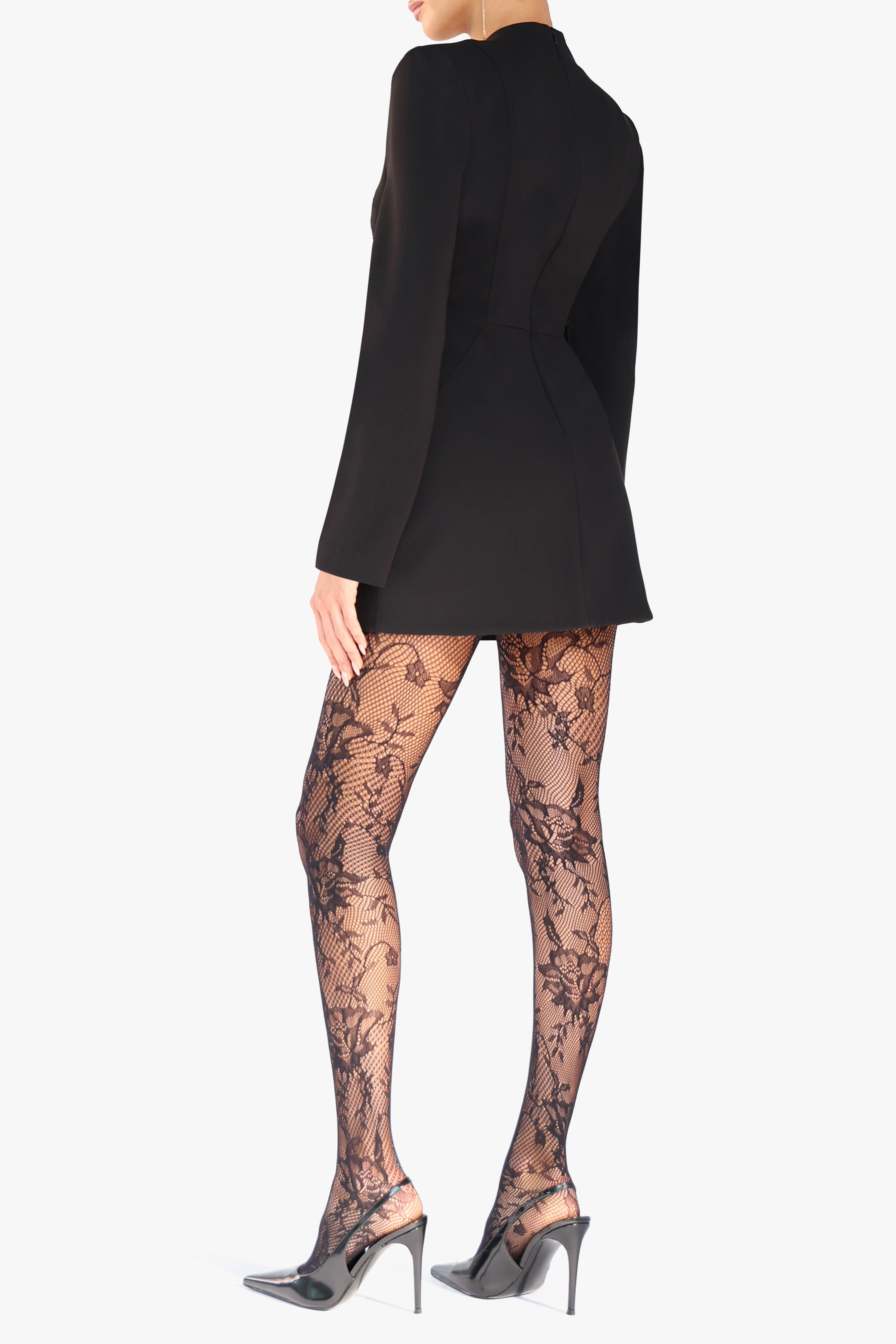 The Kenna Micro Mini Dress makes a bold entrance with a deep plunge neckline and sleek long sleeves. The structured underbust seam enhances the silhouette while adding subtle shape to the tailored bodice. Cut to a micro-mini length, it’s fully lined for a smooth finish and secured with a hidden center back zipper